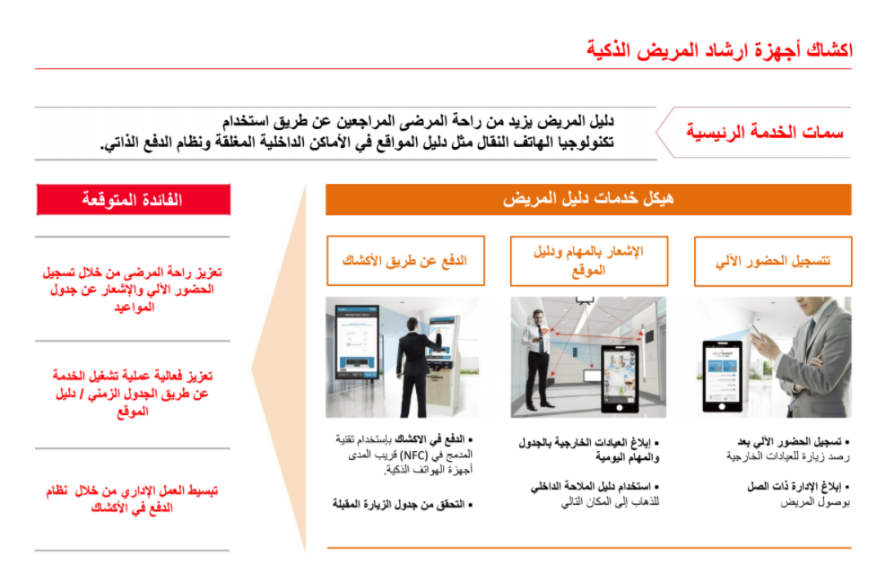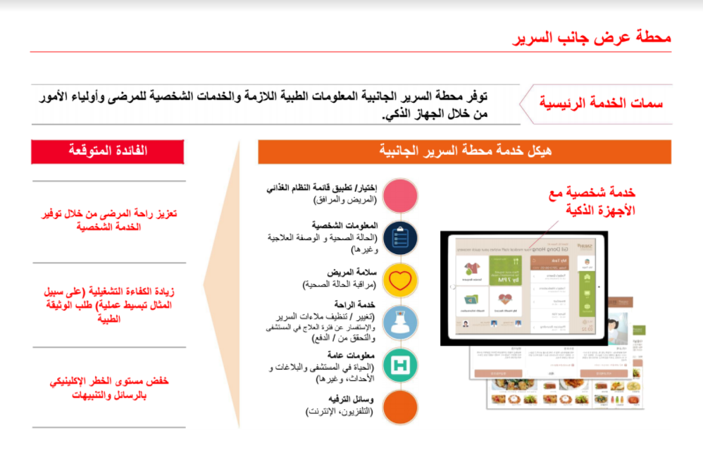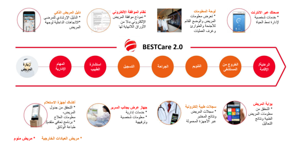 لموظفي المستشفى هناك مهام ذكية عديدة تخدم المرضى المنومين ومرضى العيادات الخارجية إلى جانب المهام الأساسية المبتكرة التي يقدمها النظام الطبي